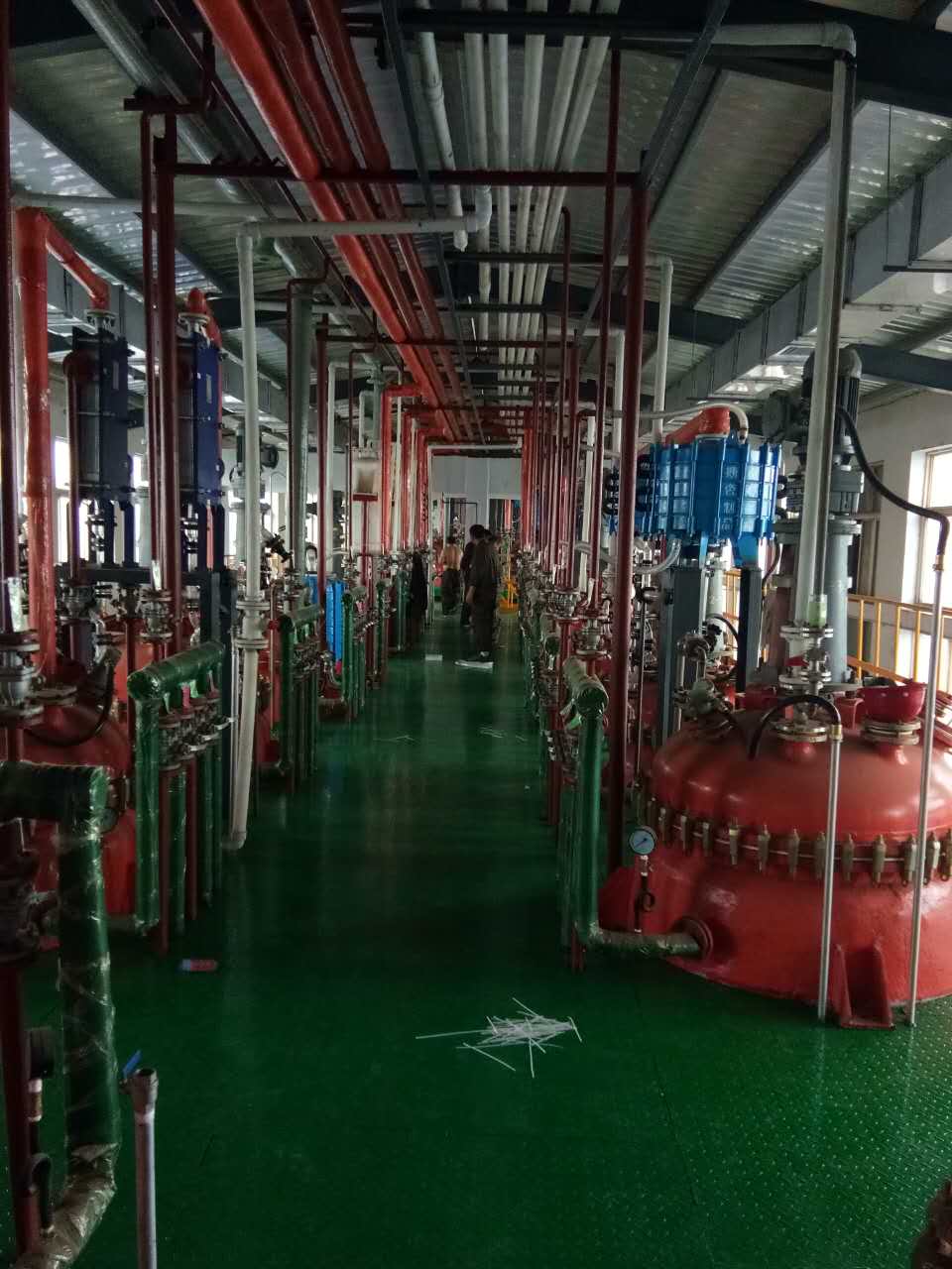 下圖為我公司為山東醫藥中間體生產公司擴產對原藥料車間的改造,我公司為安裝總負責,此項目包括車間設備及配管安裝項目即六十余臺反應釜保溫及安裝、管廊安裝、動力部分、干燥部分、溶劑回收及電力部分等。